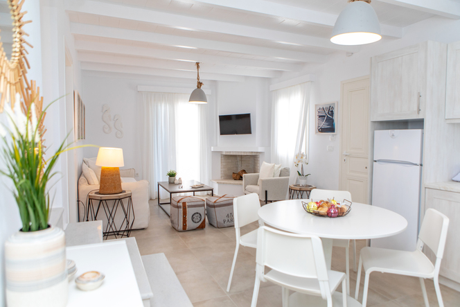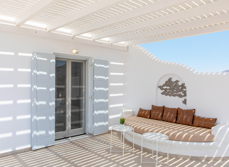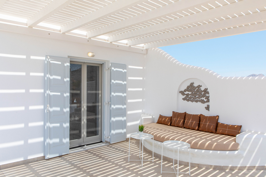 Panoramic view of the sea, the magnificent Cycladic natural landscape, a sheltered southern golden-sand beach and the tranquility of the area set the ideal enviroment for relaxation and regeneration.