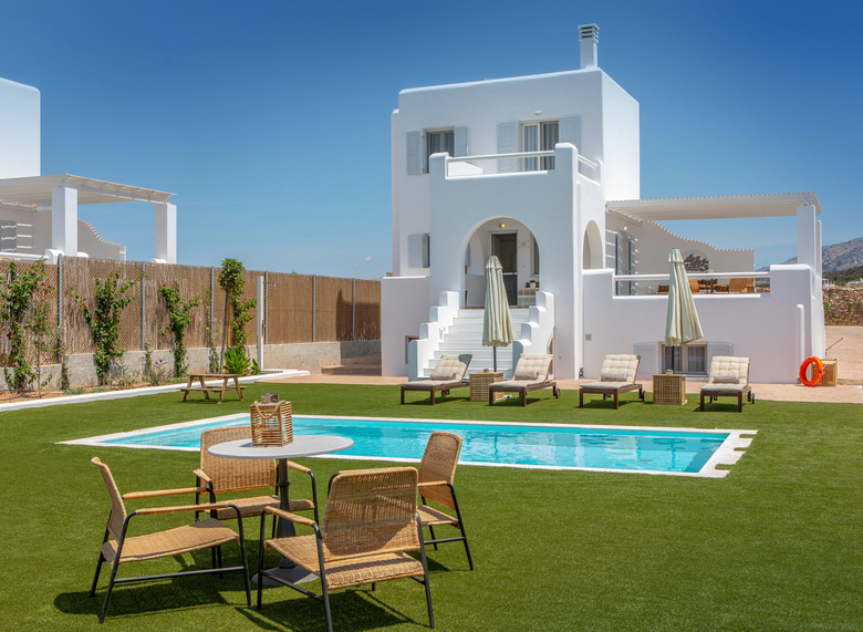 In the south-west coast of Naxos, at Pyrgaki, just 100 meters away from the sea, a complex of 22 independent villas have been laid, your new holiday or permanent home.
