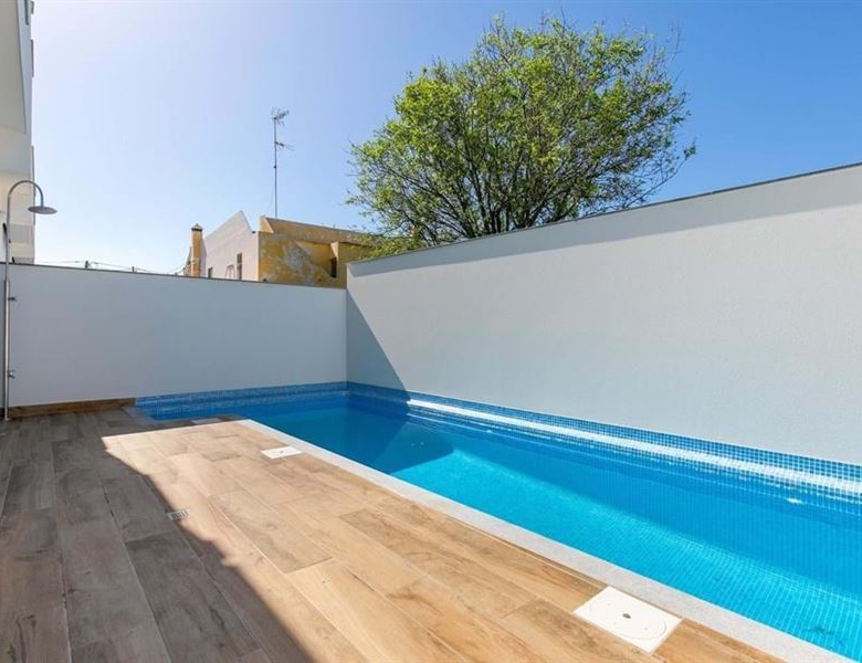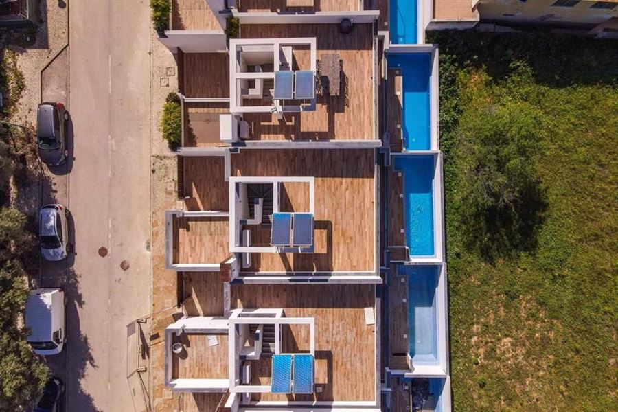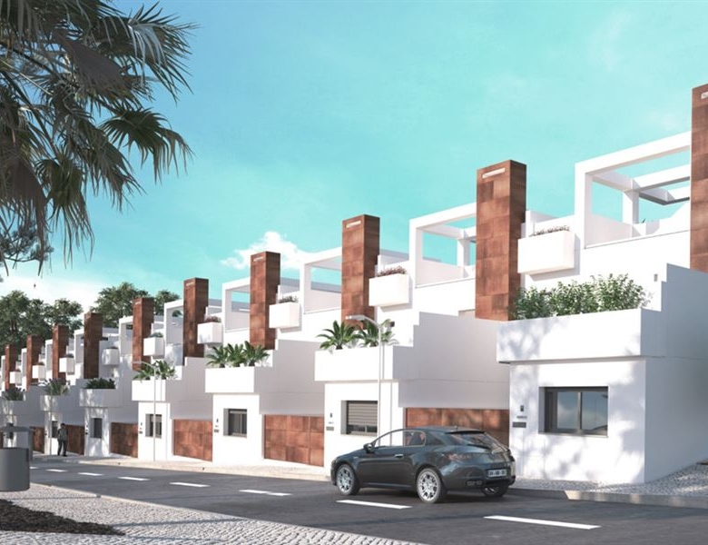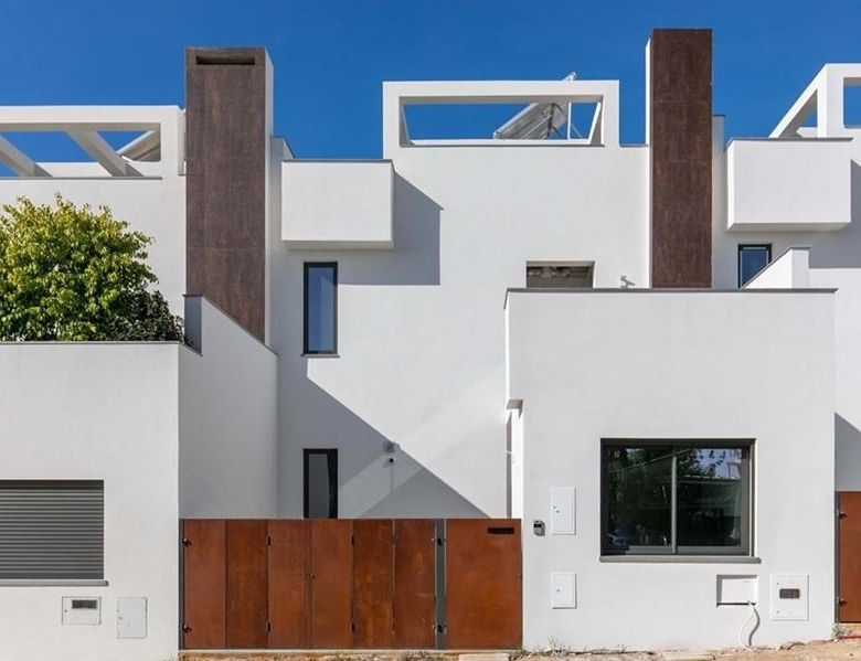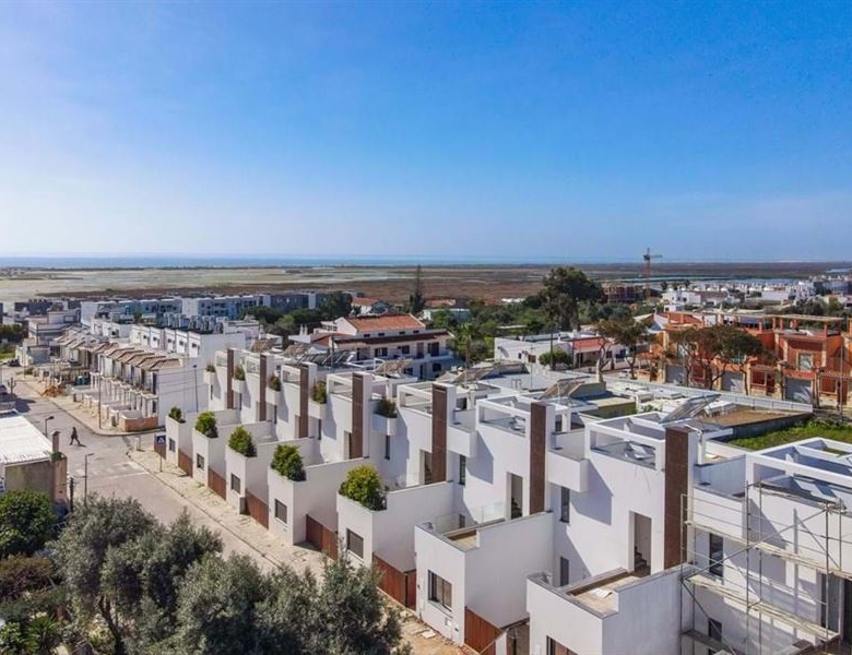Brand new three bedroom townhouses for sale in Fuseta, each with their own individual swimming pools, large terraces and fantastic views of the Ria Formosa. Offering an excellent level of construction, there are ten townhouses in total, with two still available. They are a great rental investment opportunity in the Algarve.