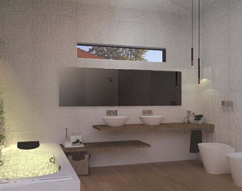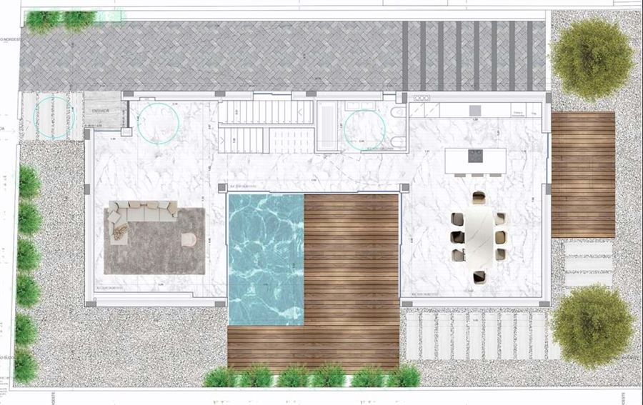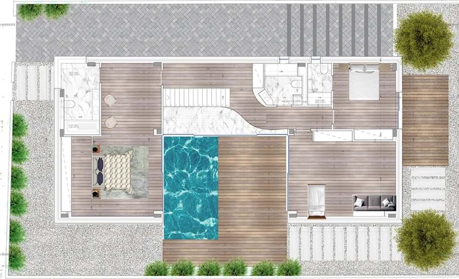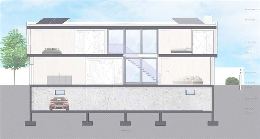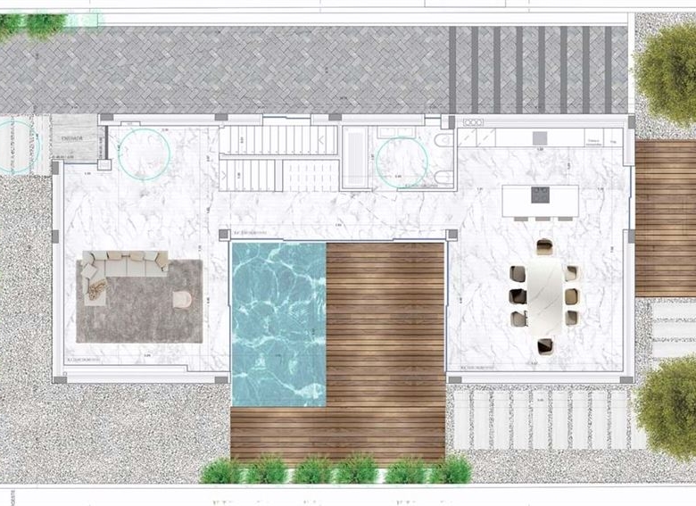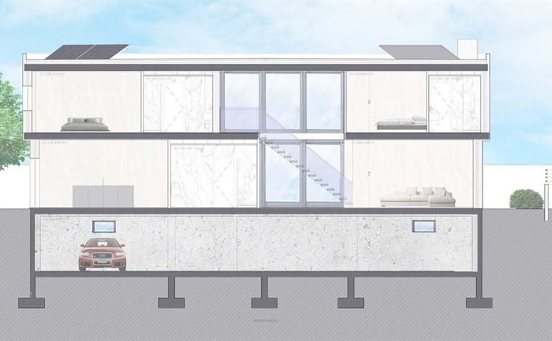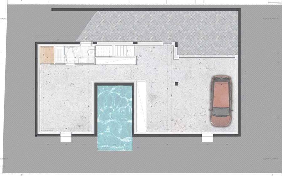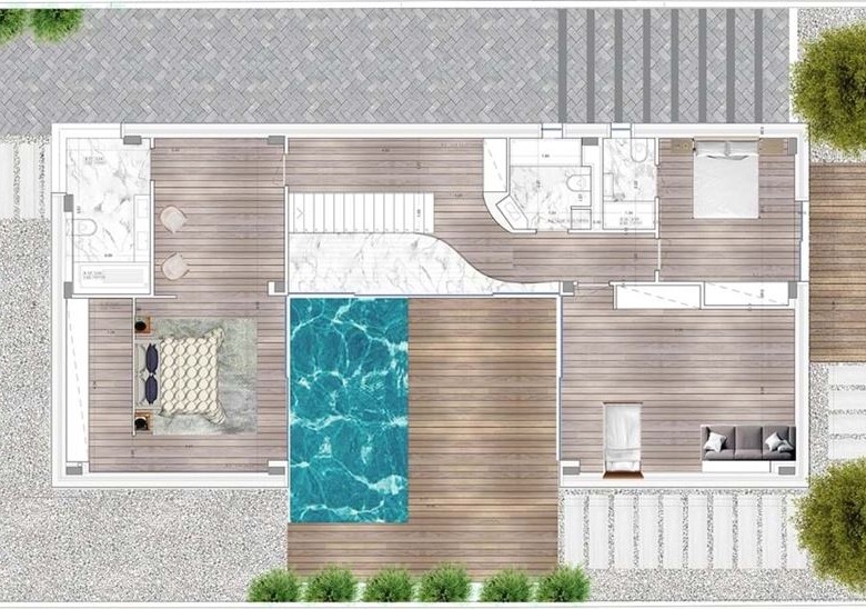 The basement will offer ample space for parking and storage, plus a convenient bathroom. Externally the villa will feature a wooden terrace for outdoor entertainment, a large swimming pool, and landscaped gardens.