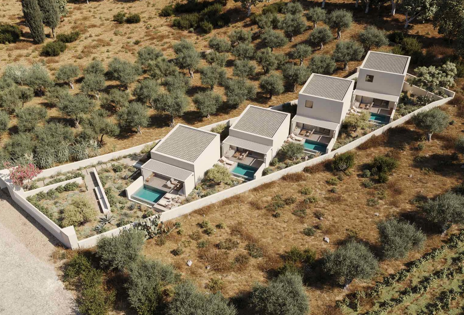Just one hour from Athens, in the most charming seaside settlement of Aeginetissa on the island of Aegina, a brand-new complex of four independent luxury residences is being developed, each offering absolute privacy and its own private garden and swimming pool.
