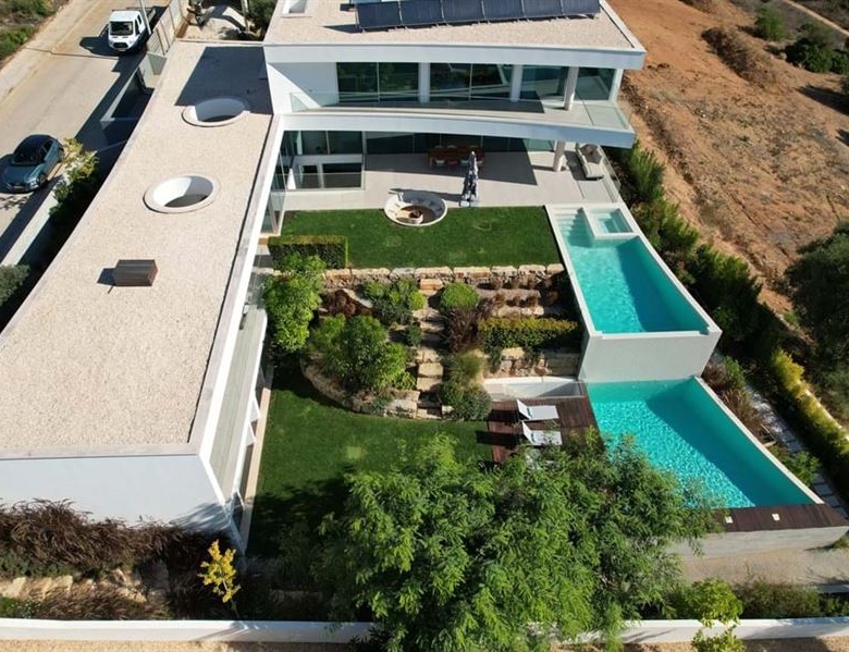 The innovative design, featuring soft and elegant curves, creates a bright and spacious atmosphere in its four en suite bedrooms. Additionally, there is an independent flat with two en suite bedrooms, ideal for accommodating visitors in total comfort.
