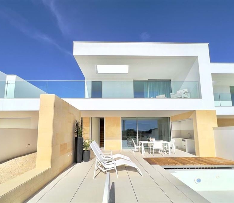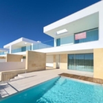 Discover a new, modern three-bedroom villa in Lagos, featuring a captivating backyard that guides you to the main entrance and a garage for two cars. To the right, a swimming pool adorned with glazed ceramic tiles and surrounded by a waterproof deck awaits, along with a pre-equipped space for a gas grill and a Dektone worktop sink, perfect for outdoor entertaining.