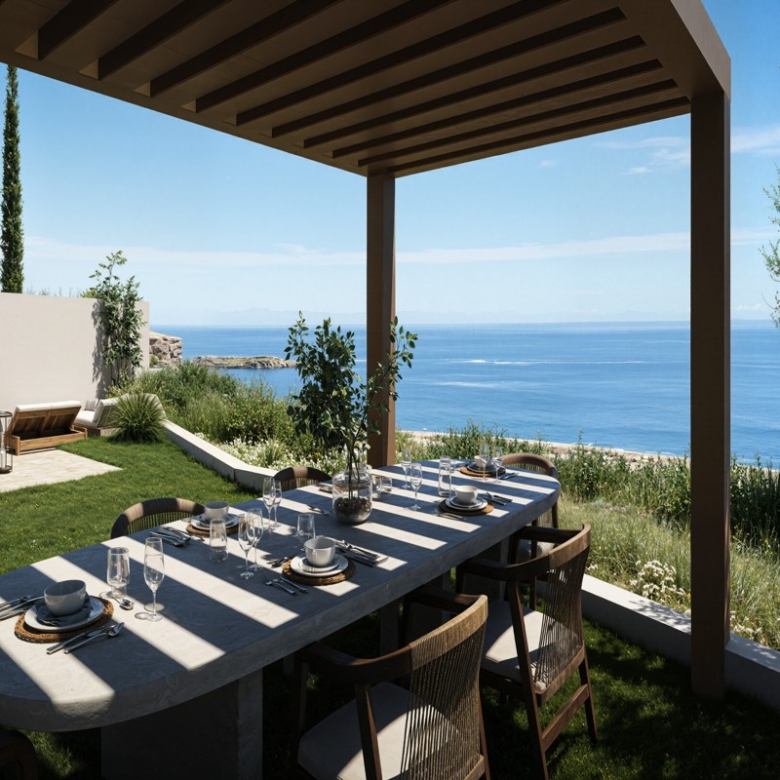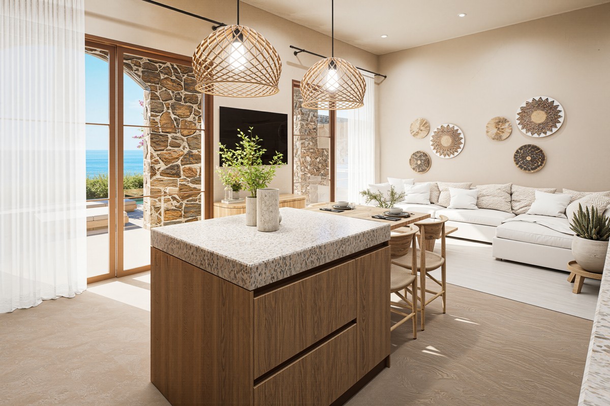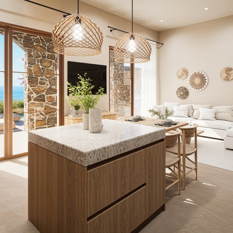 Constructed with high-quality materials and traditional Cretan architectural elements, the villas combine modern comfort with practical layouts, all within a short distance of Almyrida Beach, making them ideal for both permanent residence and holiday use.