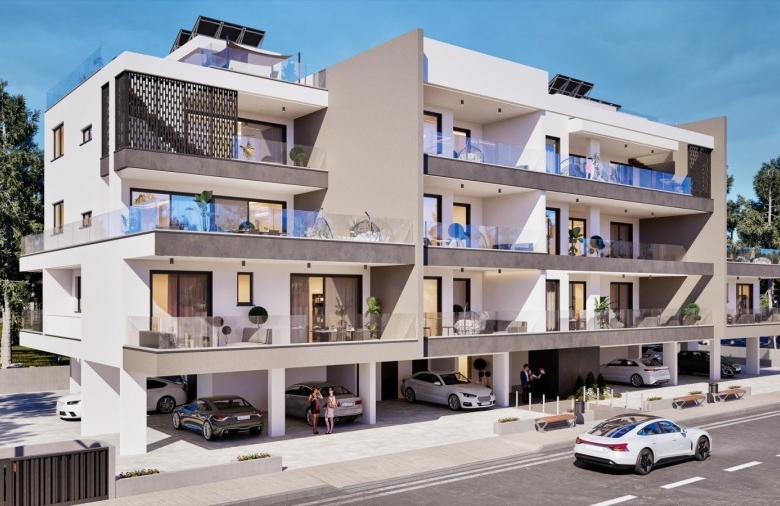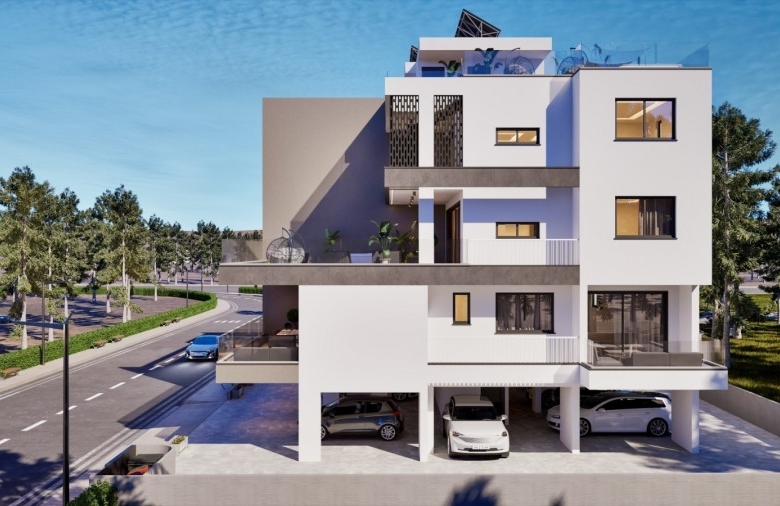 This contemporary residential project in a new, quiet neighborhood of Aradippou offers thoughtfully designed 1- and 2-bedroom apartments, ideal for modern living. Surrounded by green parks and just minutes from the Metropolis Mall, the development enjoys an excellent location with easy access to Nicosia and Limassol highways, Larnaka city center, the beach (5km), and the international airport (11km). Each apartment boasts energy efficiency (Certificate A), granite kitchen worktops, ensuite walk-in showers, large verandas, and high-quality finishes including thermal aluminum double-glazed windows, marble staircases, and glass veranda railings. Residents benefit from video intercom systems, covered parking, individual storage units, and provisions for air conditioning and electric car chargers, while penthouses feature private roof gardens.