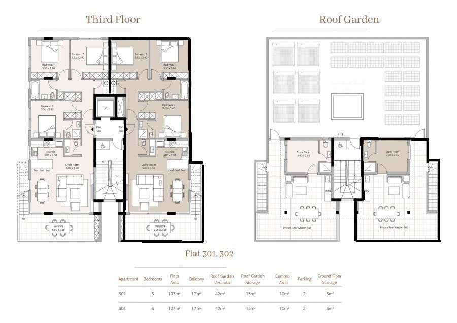 This unit has a small private green area/ garden of 4 square meters and a roof garden with storage of 57 square meters combined.
