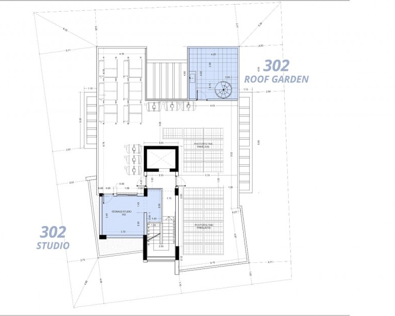 This unit has a roof garden of 21 square meters along with a roof studio of 23 square meters.