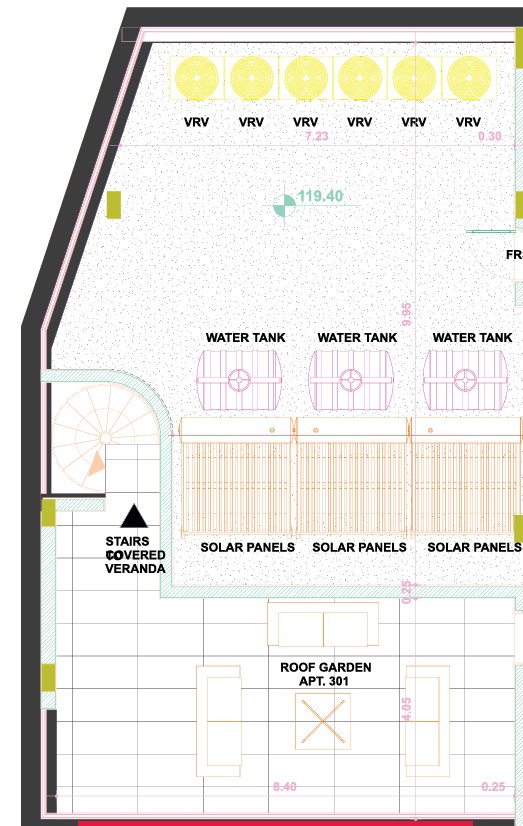 An exquisite hillside development offering unparalleled views of the city, sea, and mountains. This exclusive residential retreat seamlessly combines the serenity of hillside living with the convenience of nearby city amenities, such as supermarkets, restaurants, gyms, and schools, all within easy reach. The residence features two spacious and elegantly designed bedrooms, ensuring restful sleep. Additionally, it includes secure private parking and ample storage space. Residents can enjoy stunning sea views and lush flower beds spanning 17 sqm, enhancing the property’s beauty and ambiance. A highlight is the expansive 40 sqm roof garden, perfect for entertaining guests, dining, or simply unwinding while taking in the ocean’s serene beauty. This luxurious development offers a perfect blend of comfort and convenience in a picturesque hillside location. This unit has a flower bed area of 17 square meters and a roof garden area of 40 square meters.