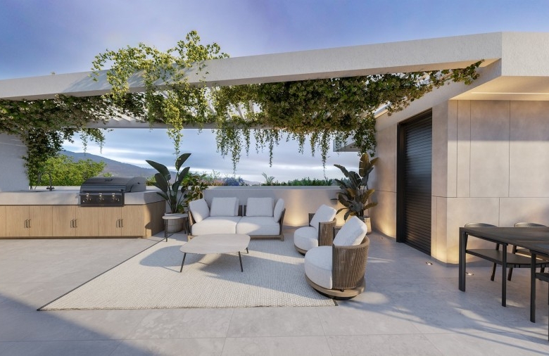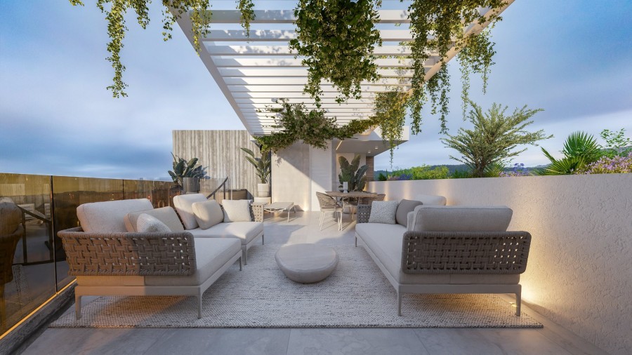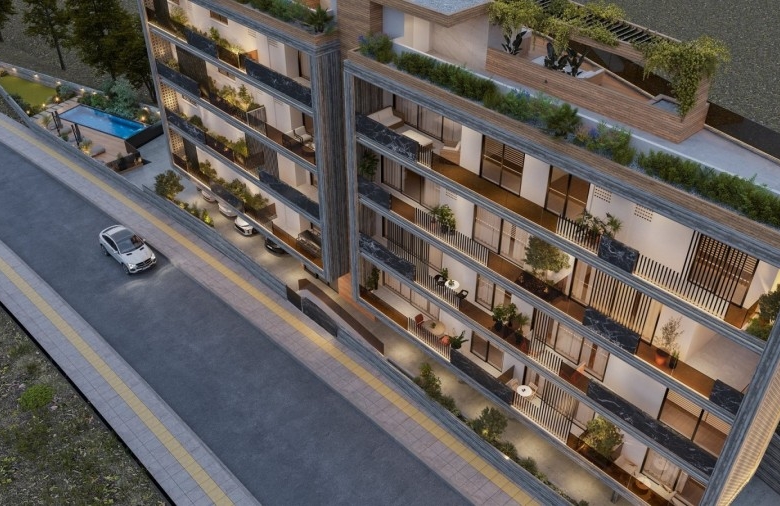 It is a modern four-story building with 11 stylish apartments. It offers a range of 1, 2, and 3-bedroom apartments and features a communal heated swimming pool for residents to enjoy. The highlight of the project is the three-bedroom penthouses located on the 4th floor, each featuring a private roof garden with its own jacuzzi, offering the ultimate luxury and privacy.