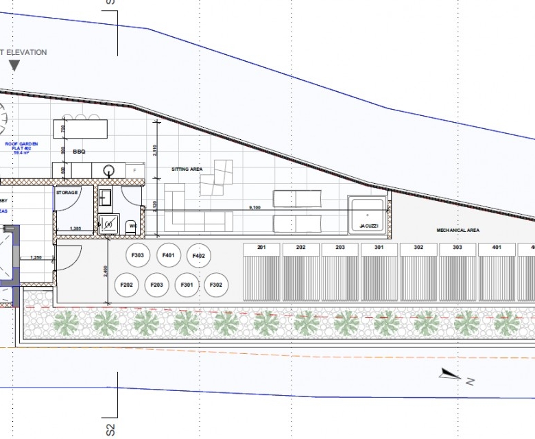 This unit has a 59 sqm private roof garden with a jacuzzi.