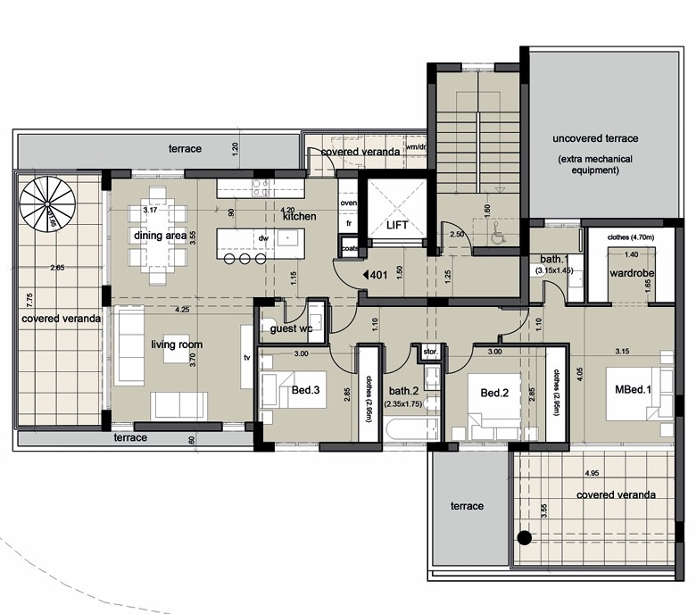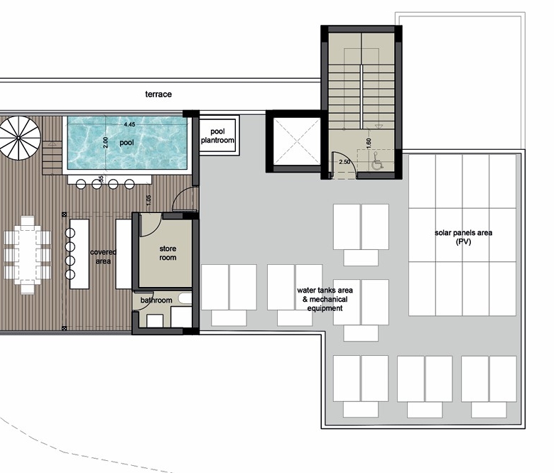 One of the highlights of this property is the large covered veranda, perfect for relaxing or entertaining. Additionally, the private 65m² roof garden offers an exclusive outdoor space to enjoy breathtaking views and create your personal oasis. Residents also have access to a communal swimming pool, ideal for unwinding or enjoying sunny days with family and friends.