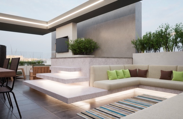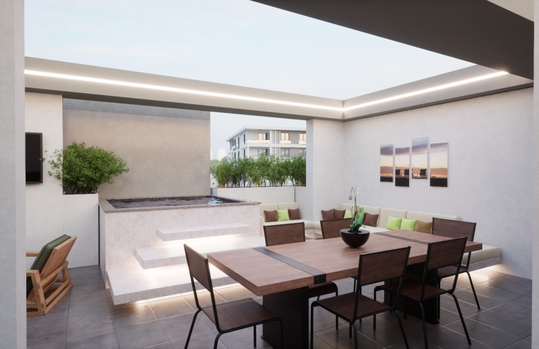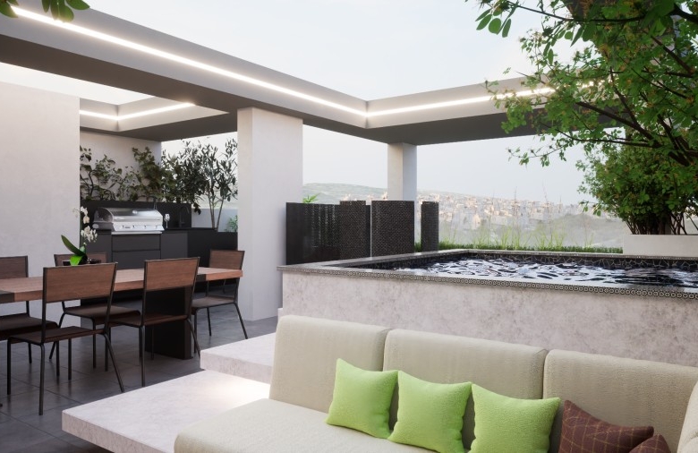 The highlight is the private roof garden, an ideal space for relaxation or entertaining, offering panoramic views of the lush surroundings and city skyline. Residents benefit from energy-efficient amenities, secure parking, and proximity to beaches, shopping, and key city attractions, all within a tranquil green zone.