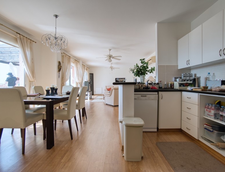 This stunning penthouse offers luxurious living in a prime location, featuring an elevator, covered parking, and a spacious storage shed. Upon entering, you are welcomed into a bright and expansive living room that seamlessly connects to a large, modern kitchen equipped with high-end Miele appliances. The property boasts three well-appointed bedrooms, with two double bedrooms sharing a stylish family bathroom, while the master bedroom benefits from a private en-suite. Designed for both comfort and elegance, this penthouse is a perfect choice for families or investors looking for a premium home in Paphos.