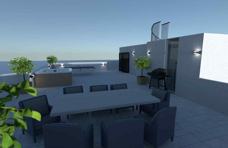 Occupying the entire floor, the penthouse offers generous open-plan living spaces, seamlessly connected to a huge private roof terrace — perfect for entertaining, relaxing, or enjoying panoramic views of Paphos and beyond. Designed to the highest specifications, the property will feature premium finishes, floor-to-ceiling windows flooding the interiors with natural light, and stylish modern fittings throughout.