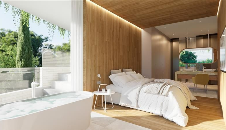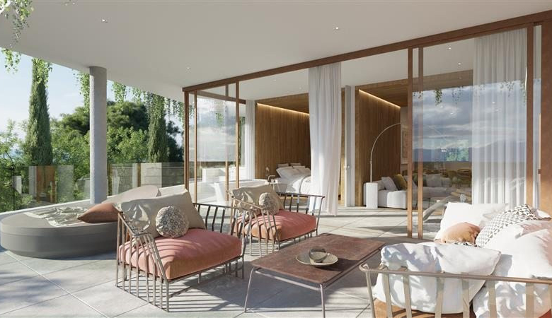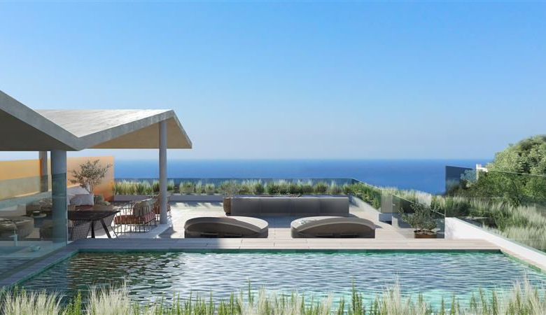 Maximum intimacy embraced by natural vegetation for each apartment to enjoy and relax in the private jacuzzi, while admiring views of the Mediterranean Sea and nature. The penthouses, follow the architectural design in the solariums, with pointed hexagonal shaped roofs to provide shade in the outdoor dining area blending in with the surrounding trees. Breathe in the fresh indigenous vegetation of the area while taking a relaxing swim in the private pool at the solarium.