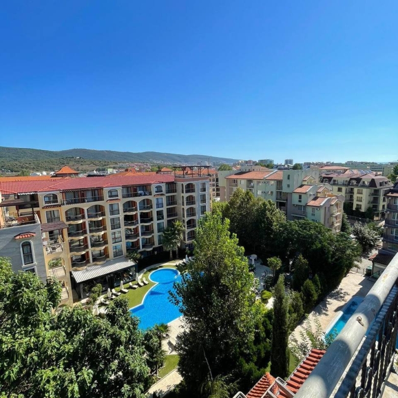 Harmony Suites 1 is located in the northwestern part of Sunny Beach. Nearby, there are many facilities and entertainment options – restaurants with Bulgarian and European cuisine, bars and nightclubs, an amusement park, and souvenir and clothing shops. Thanks to public transport, nearby towns such as Sveti Vlas, Ravda, Elenite, Pomorie, Nessebar, and Burgas are easily accessible.