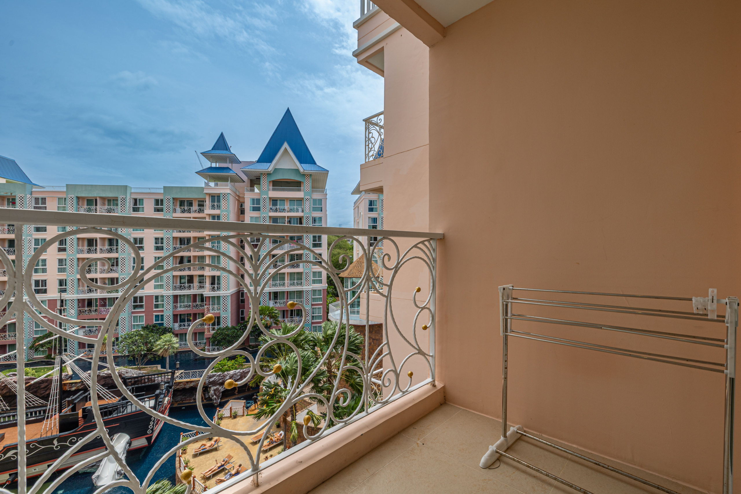 Facilities include resort-style swimming pools with water slides and pirate ship