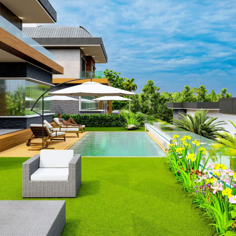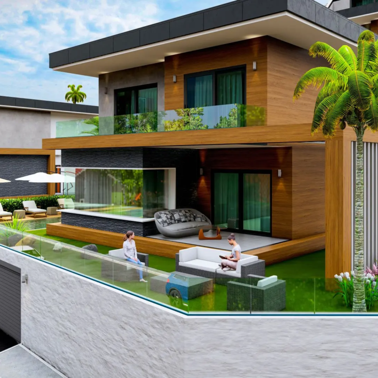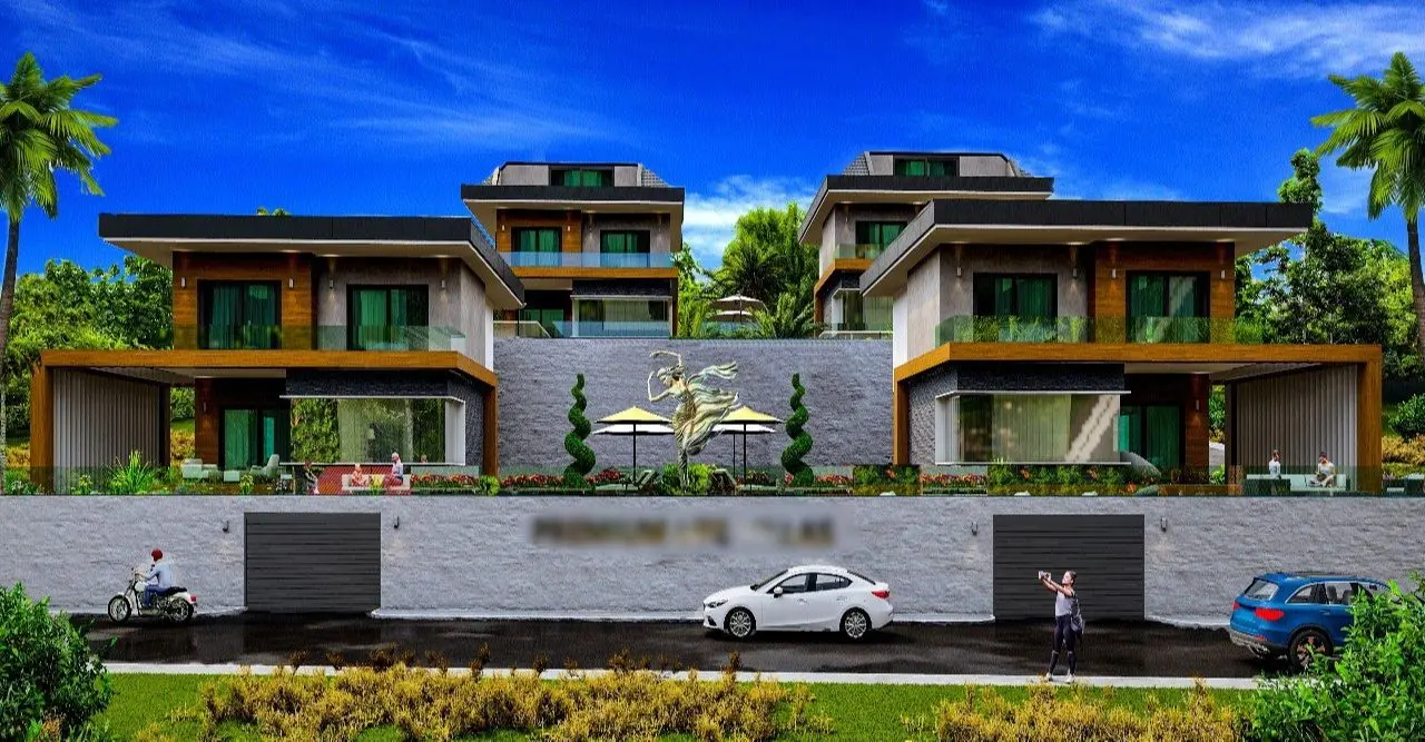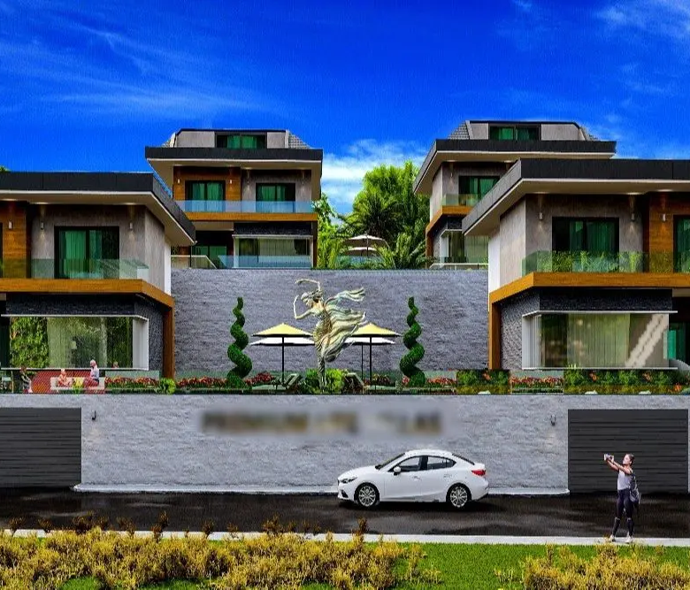 The project comprises four exclusive villas: two double-story (4+1) and two triple-story (5+1) units. Each villa sits on a 416 m² plot, offering ample garden space and a private swimming pool. The double-story villas cover 260 m², while the triple-story villas span 360 m², including a generous terrace area.