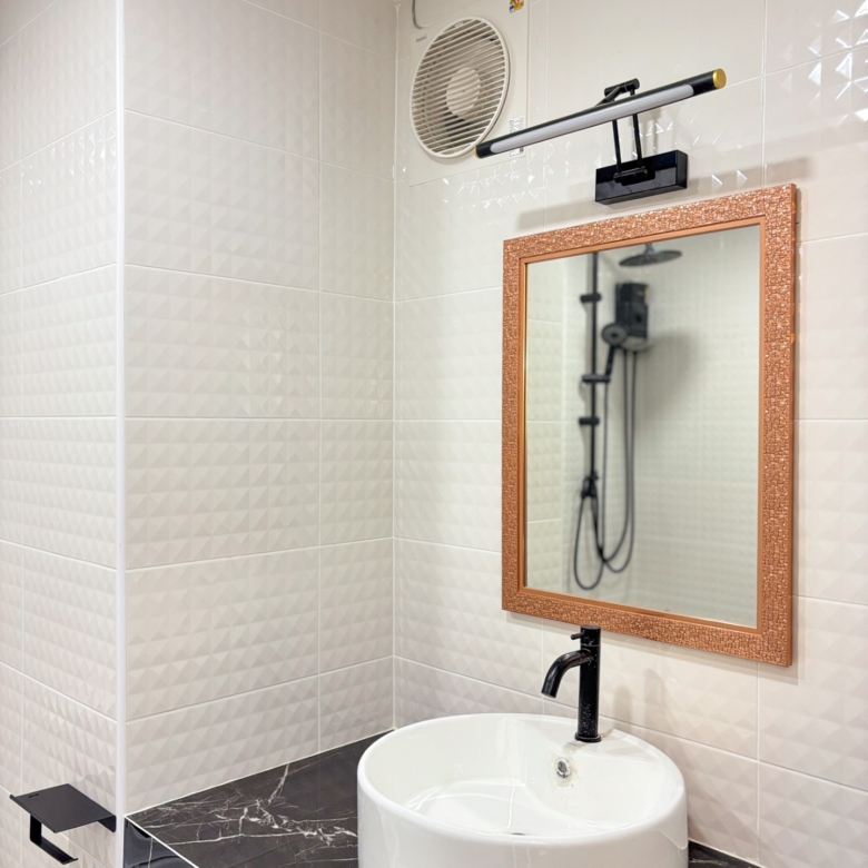 • Size: 38 sqm studio with sliding glass partition, giving the feel of a one-bedroom layout