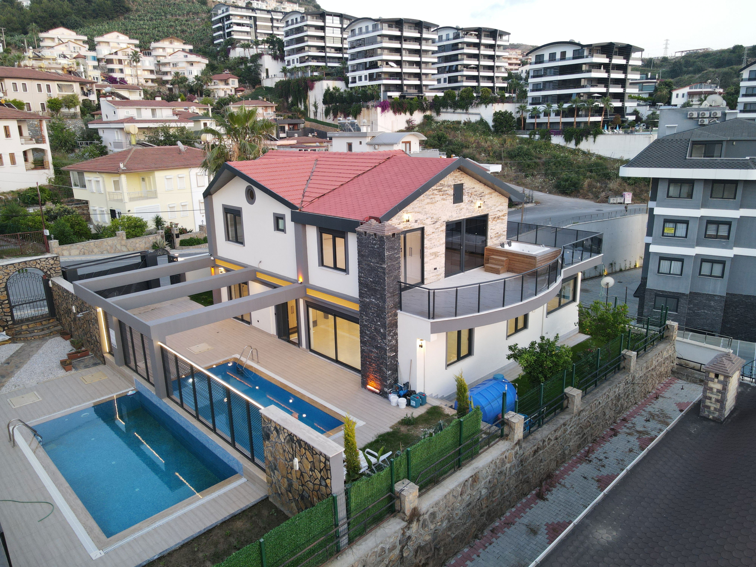 This 366 m² home sits on a generous 420 m² plot and boasts a four-sided orientation, offering uninterrupted views of the Mediterranean, Alanya Castle, the Taurus Mountains, and the vibrant cityscape. The private swimming pool, beautifully landscaped garden, and rooftop terrace with jacuzzi make it ideal for both serene living and impressive entertaining.