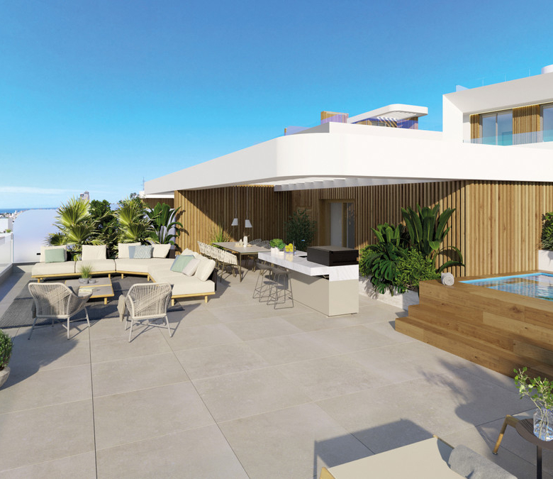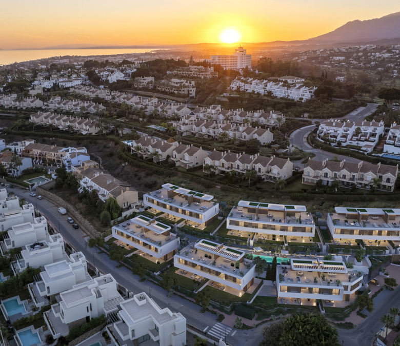 An exclusive boutique development of 14 semi-detached homes ideally located on Estepona's prestigious New Golden Mile, between the renowned El Paraíso and El Campanario golf courses. Designed for modern Mediterranean living, each home features four spacious bedrooms, four bathrooms, a private garden, a generous basement, and a spectacular rooftop solarium with panoramic sea and mountain views.
