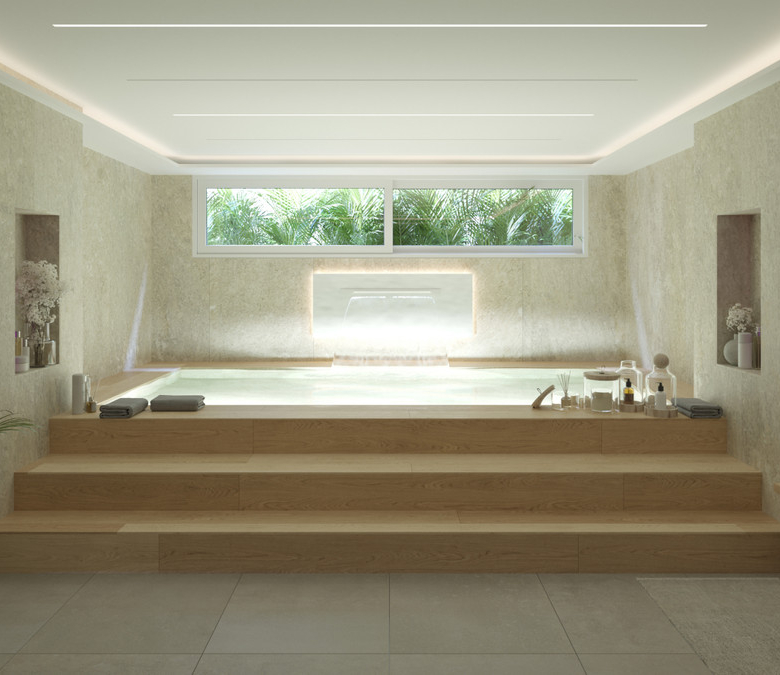 The interiors are bright and open, with high ceilings and floor-to-ceiling windows that seamlessly connect to outdoor spaces. Premium finishes such as porcelain flooring, underfloor heating, and energy-efficient aerothermal systems ensure year-round comfort. Each home includes a fully equipped kitchen, luxury bathrooms, underground parking for two cars, and options for private pools or jacuzzis on the solarium level.