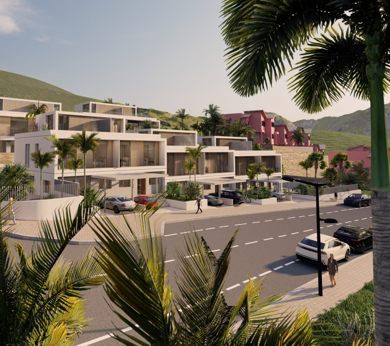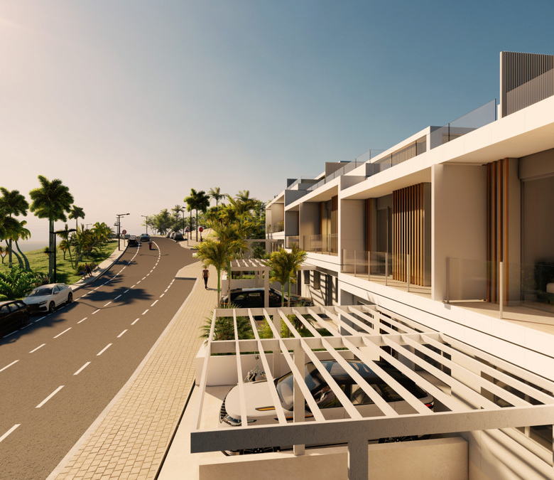 For the realisation of this exclusive new boutique development of 10 attached villas, a plot with wonderful views of the sea, the golf course and the mountains has been chosen.