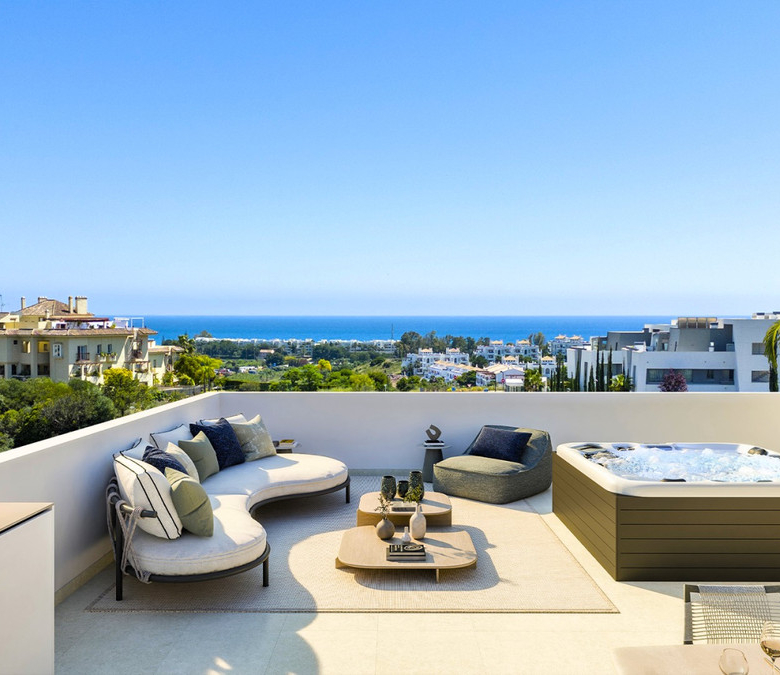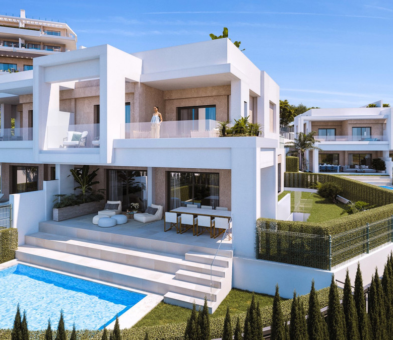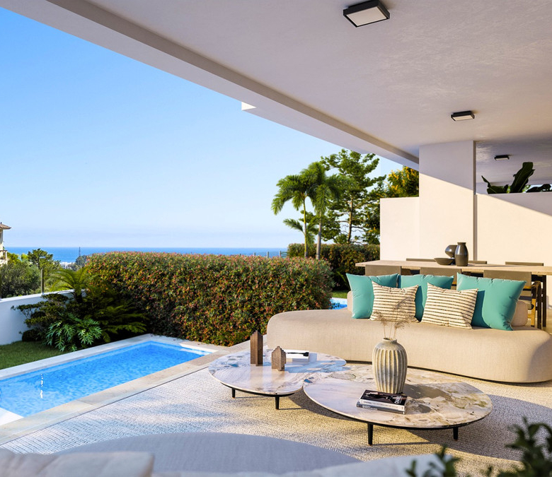 Luxury semi-detached villas, in Selwo-New golden Mile, within few minutes to Puerto Banús and Estepona, in a gated exclusive community full of amenities with gym, spa, coworking, paddle, jacuzzis, summer pool for adults and children, infinity heated pool with panoramic sea views, children playgrounds and security entrance.