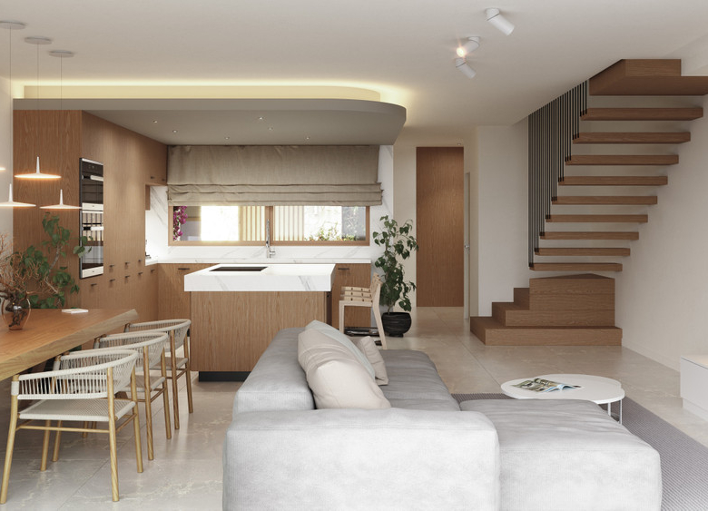 The corner houses offer extra luxury: a fourth bedroom with bathroom on the ground floor and a roof terrace with spectacular views.