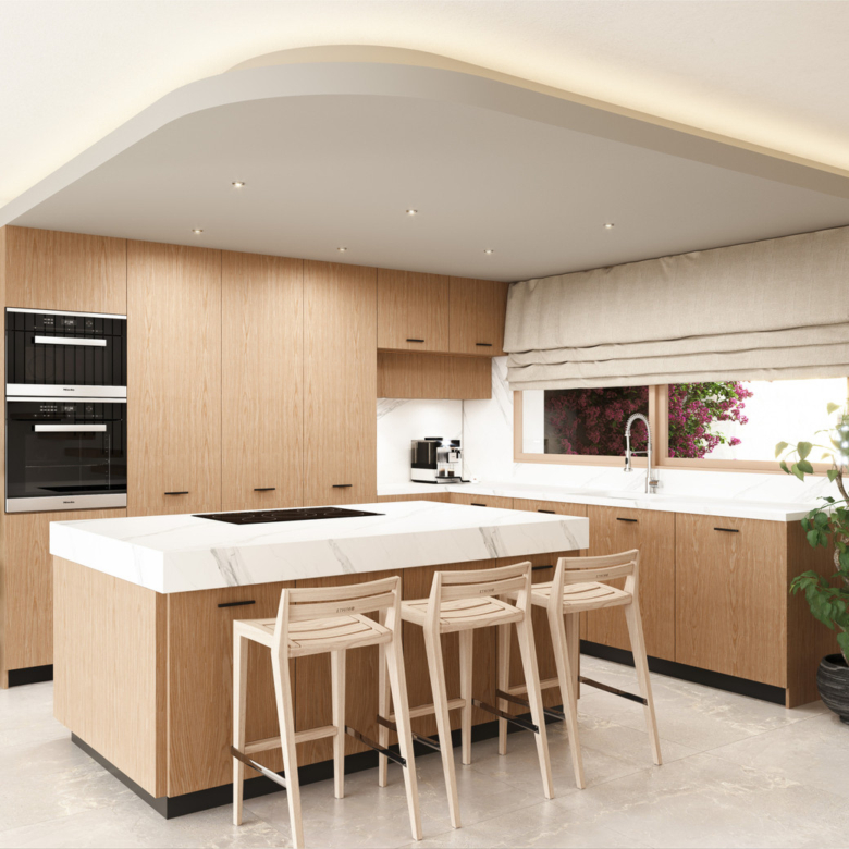 Each home has at least 128 m² of living space, a bright living room with large windows, an open kitchen with cooking island and high-quality materials.