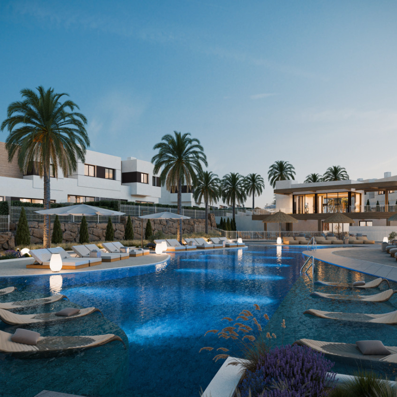 The philosophy of the project seeks to achieve a balance between architecture and nature. Designed to enhance the beauty of the surroundings, it creates a "resort" space featuring pools with a chill-out area, a co-working space for working from the comfort of your home, a fully equipped gym, and a social club where you can share unforgettable moments with your loved ones and neighbours.