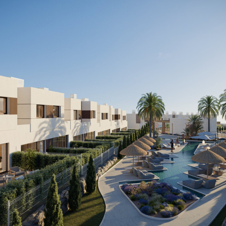 The philosophy of the project seeks to achieve a balance between architecture and nature. Designed to enhance the beauty of the surroundings, it creates a "resort" space featuring pools with a chill-out area, a co-working space for working from the comfort of your home, a fully equipped gym, and a social club where you can share unforgettable moments with your loved ones and neighbours.