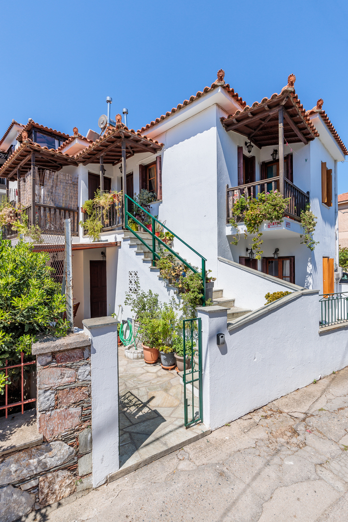 Presenting a charming traditional house with sea views on the beautiful island of Skopelos, part of the lush Sporades complex renowned for its stunning beaches.