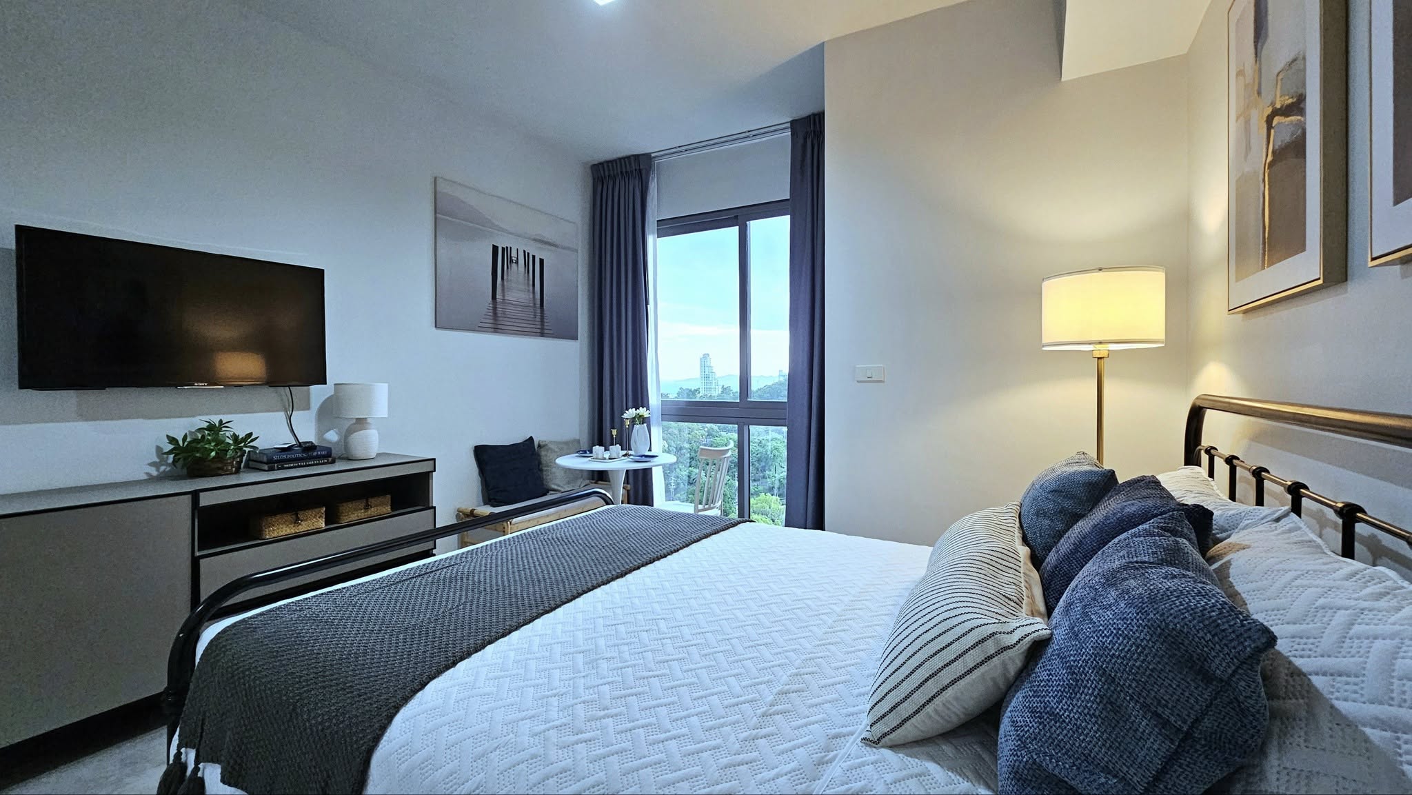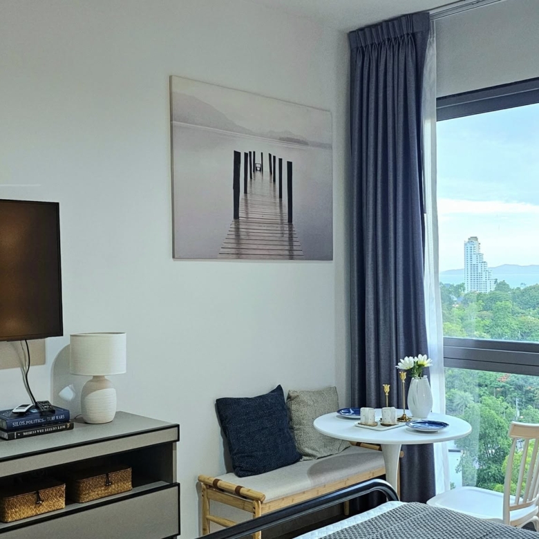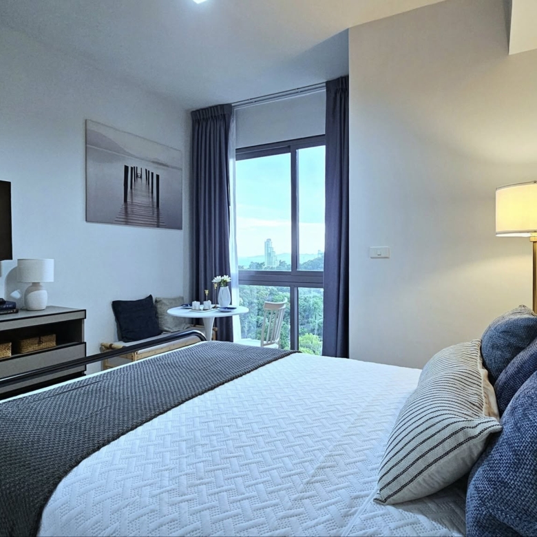 This high-floor studio is located on the 23rd floor of Unixx South Pattaya, offering open views of the sea, the city, and the lush Pratumnak hill. The unit is fully furnished and perfect for personal use or as a rental investment.