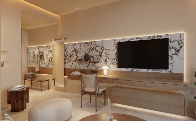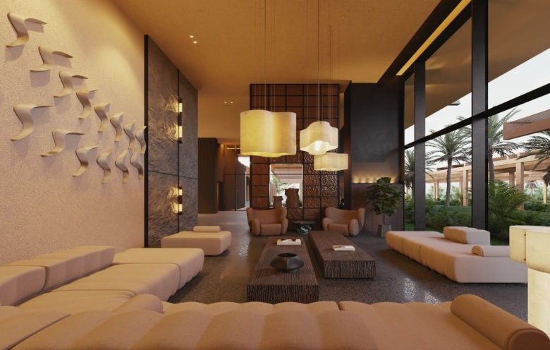The resort offers a comprehensive hospitality experience with a refined lobby, reception area, and elegant lounge and bar, alongside versatile event venues, a business lounge with conference rooms, and a charming on-site chapel for weddings. Dining options include unique restaurants, a concept coffeehouse, an open garden bar, pool bar, and beach bar. Guests can enjoy extensive wellness and community amenities such as indoor and outdoor pools, a fitness centre, luxury spa, various sports facilities, kids’ and teens’ clubs, an outdoor playground, and an open-air cinema. Embracing coastal living, the resort features direct beachfront access, waterfront lounge areas, and a variety of water activities including paddleboarding, kayaking, and jet skiing.
