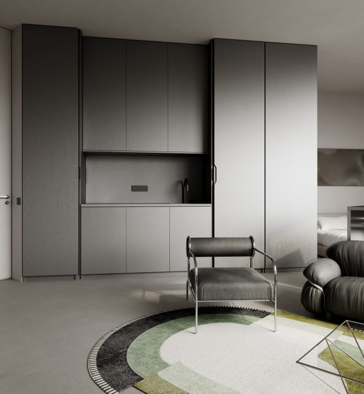 Every apartment has been carefully planned to maximize space and atmosphere, transforming even the most functional rooms into inspiring and inviting areas. Natural light, lush greenery surrounding the building, and artistic interior design combine to create a distinctive living experience.