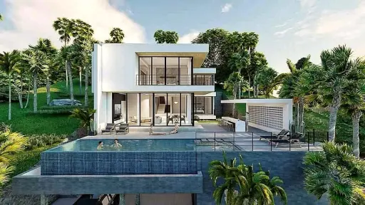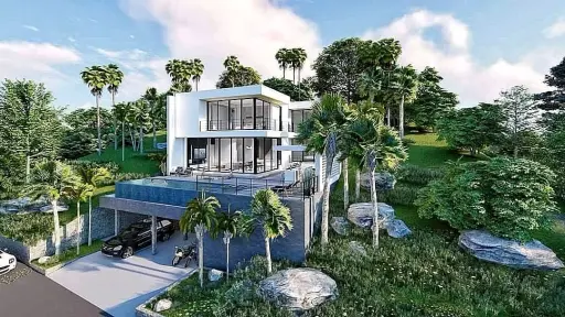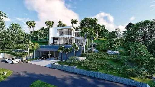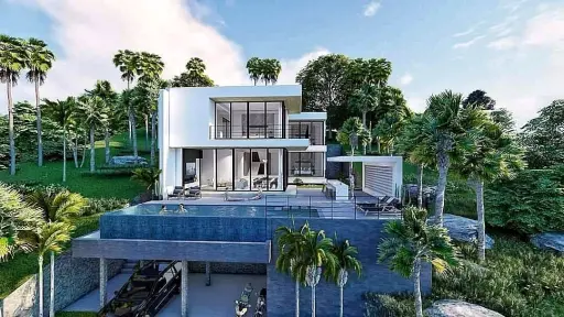 Discover European-inspired luxury and panoramic sea views in this brand-new Maenam pool villa.