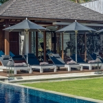The villa’s open-plan layout offers seamless indoor-outdoor living. Floor-to-ceiling windows invite abundant natural light and frame stunning ocean vistas. Outside, a 20-meter infinity pool appears to merge with the sea, while the cliff-edge bale and surrounding sunbeds create the ultimate setting for sunset lounging. An expansive entertaining bale, complete with a bar, dining area, and BBQ facilities, is designed for memorable gatherings and special events.