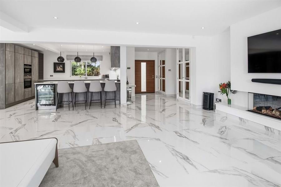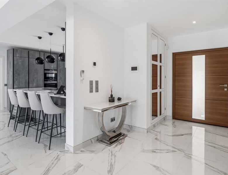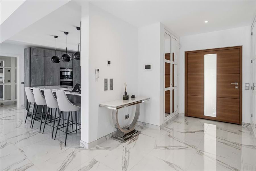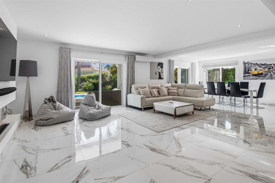 Situated on a generous 916 m² plot with 235.7 m² of built area, the villa includes a carport for two vehicles, a gated entrance, brand-new air conditioning systems throughout, and underfloor heating for year-round comfort. Its south-facing orientation ensures excellent natural light, creating a bright and welcoming atmosphere in every room.