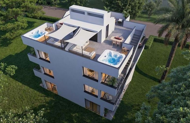 The top floor features a large terrace that offers stunning views of both the sea and the city. This space is perfect for setting up an outdoor lounge area where you can soak in the views, host friends, or enjoy a BBQ. It’s the ideal spot to unwind and make the most of the beautiful surroundings.