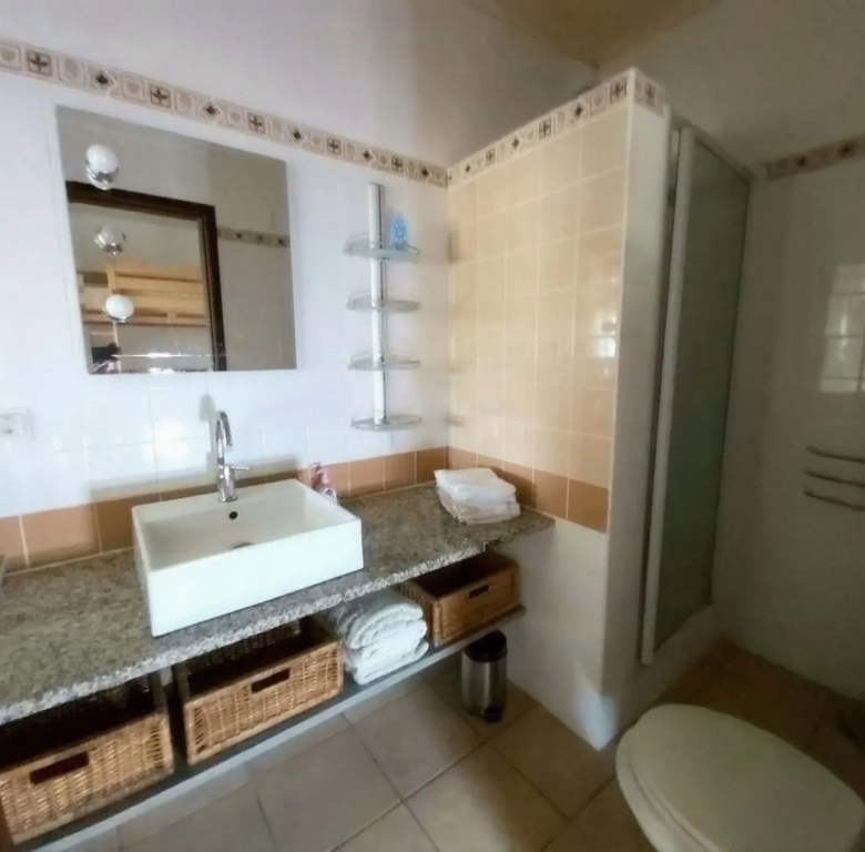 Good location, near to the ocean, privileged for being within short distance for all the services and the beautiful beaches. This property is constituted by an entrance hall, 3 bedrooms with suite, an extra adapted bedroom, one bathroom with shower, living room with a fireplace ( heat recovery) and a living room with an open space to the kitchen area with some steps with access to the living room downstairs. Kitchen fully equipped with laundry. One living room with a TV, a fire place, and also a living room/dining room open with a kitchenette and open terraces.