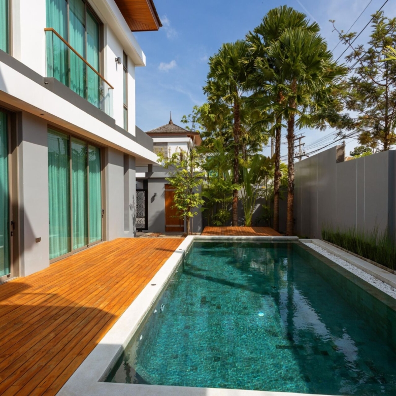 Located in the tranquil and upscale community of Cherngtalay, this beautifully designed 3-bedroom, 4-bathroom pool villa is part of the exclusive The Teak Phuket development, a boutique collection of just 8 luxury homes. This particular villa offers a usable area of 391 sqm on a 313 sqm land plot, making it an ideal choice for those seeking a well-sized, easy-to-maintain property in one of Phuket’s most sought-after neighborhoods. The villa is fully furnished and ready to move in, combining functionality, comfort, and timeless style. Property Details: Location: The Teak Phuket, Cherngtalay, Phuket Price: THB 23,300,000 Usable Area: 391 sqm Land Size: 313 sqm Bedrooms: 3 Bathrooms: 4 Ownership: Leasehold Furnishing: Fully furnished Status: Completed and move-in ready Year Built: 2023 Villa Features: Private swimming pool surrounded by tropical greenery Open-plan living and dining space with large sliding glass doors Full Western kitchen with high-end appliances and modern finishes Spacious bedrooms with ensuite bathrooms and built-in wardrobes Outdoor terrace and upper-floor balcony for relaxing or entertaining Teakwood design elements for warmth, durability, and classic charm Covered carport and storage areas High ceilings and natural light throughout Development Highlights: Limited to just 12 luxury villas Designed by RDM Design Group Surrounded by nature and offering complete privacy Peaceful, community-driven living environment Location Benefits:Ideally situated just minutes from Laguna Phuket, Bang Tao Beach, Boat Avenue, and Porto de Phuket, the villa is close to shopping, restaurants, golf, and international schools. It offers both convenience and serenity in equal measure. Contact us today to schedule a private viewing or request more information.