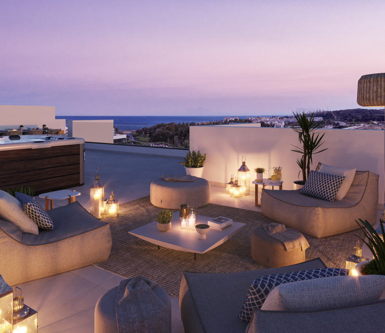 The penthouses at this resort in Estepona offer a true taste of Mediterranean luxury. Enjoy stunning sea views from your spacious terraces, complete with an exclusive jacuzzi on the rooftop. These bright, three-bedroom homes create a peaceful, upscale environment. You'll have access to top-notch amenities designed for your comfort, including an infinity pool, a fully equipped gym, a gourmet lounge, and dedicated yoga spaces. Located near beautiful beaches and world-class golf courses, the resort is also just a short walk from Estepona's charming old town, where you'll always find something new to explore. Plus, you're perfectly connected to Marbella, Sotogrande, and Malaga. These penthouses come with high-end finishes, such as motorized blinds opening onto the terrace, underfloor heating in the master bathroom, and a state-of-the-art kitchen, ensuring comfort and exclusivity throughout your home.