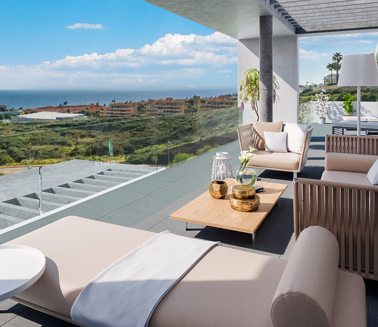 Stylish residential complex of 82 apartments in Mijas, built across two phases with terraced architecture that blends beautifully with the landscape. Its elevated position offers panoramic sea views, even from the raised ground-floor units, which sit 10 metres above street level.