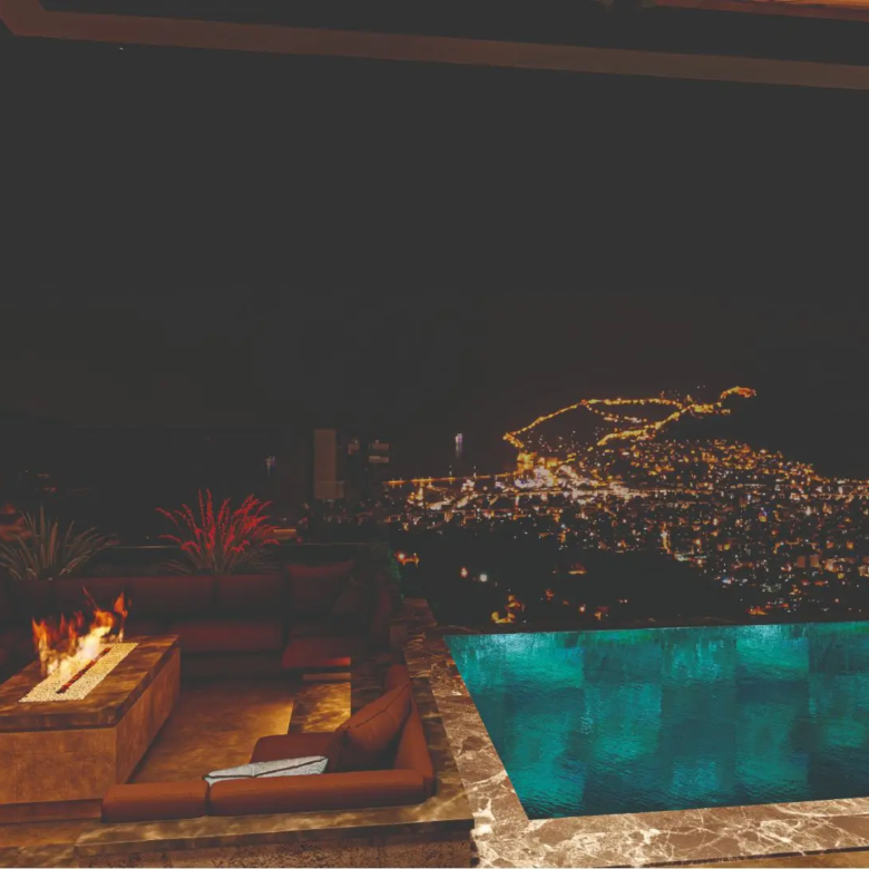 – Infinity Pools: Each villa comes with its own infinity pool, offering uninterrupted views of the sea and city.
