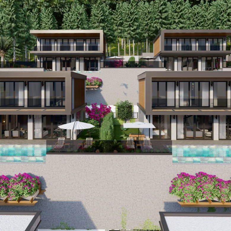 – Six Triplex Villas: Each villa offers 305 m² of living space configured in an 8+1 layout, complete with four master bedrooms.