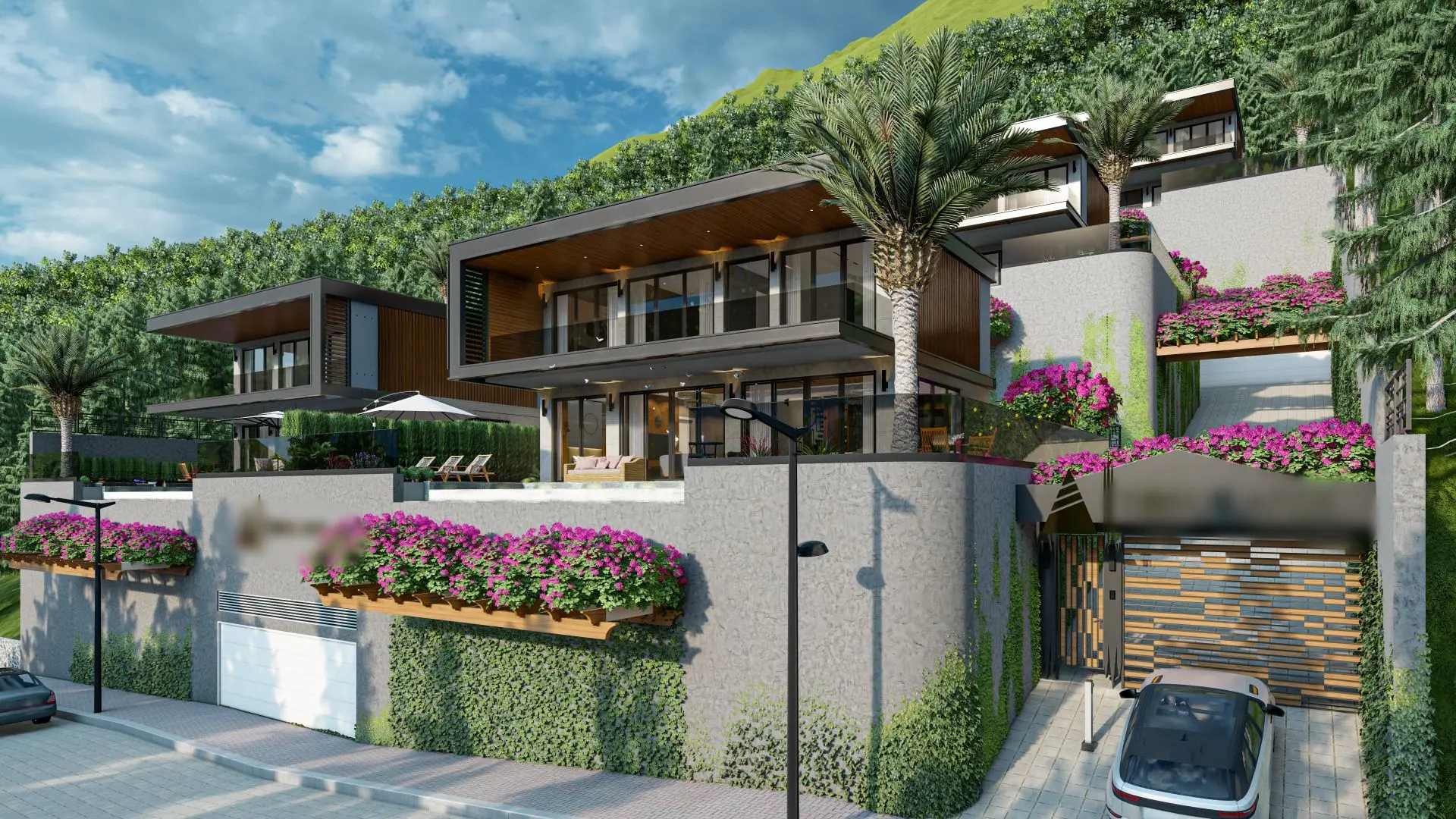– Private Parking: Each villa includes a two-car covered parking space.