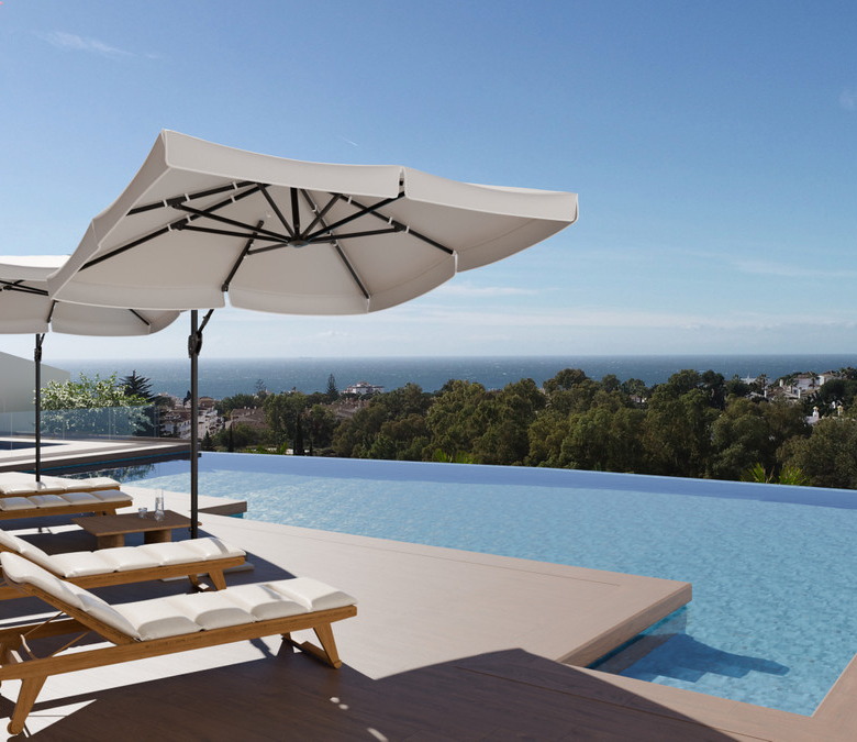 Enjoy panoramic sea views and lovely sunsets on the roof top terrace of your new home.