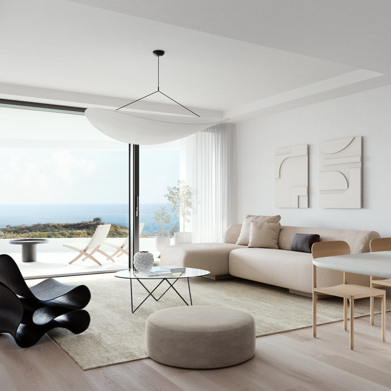 This exclusive project with an elegant Scandinavian design blends harmoniously with the surrounding nature. The architecture of the townhouses follows seamlessly the undulating shapes of the waves.