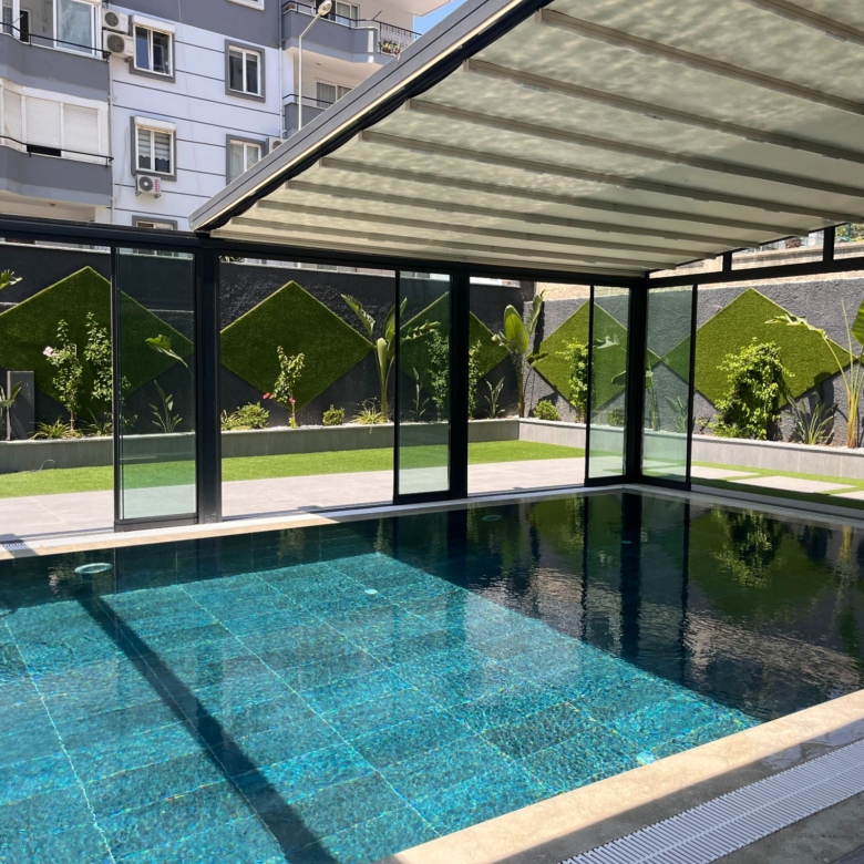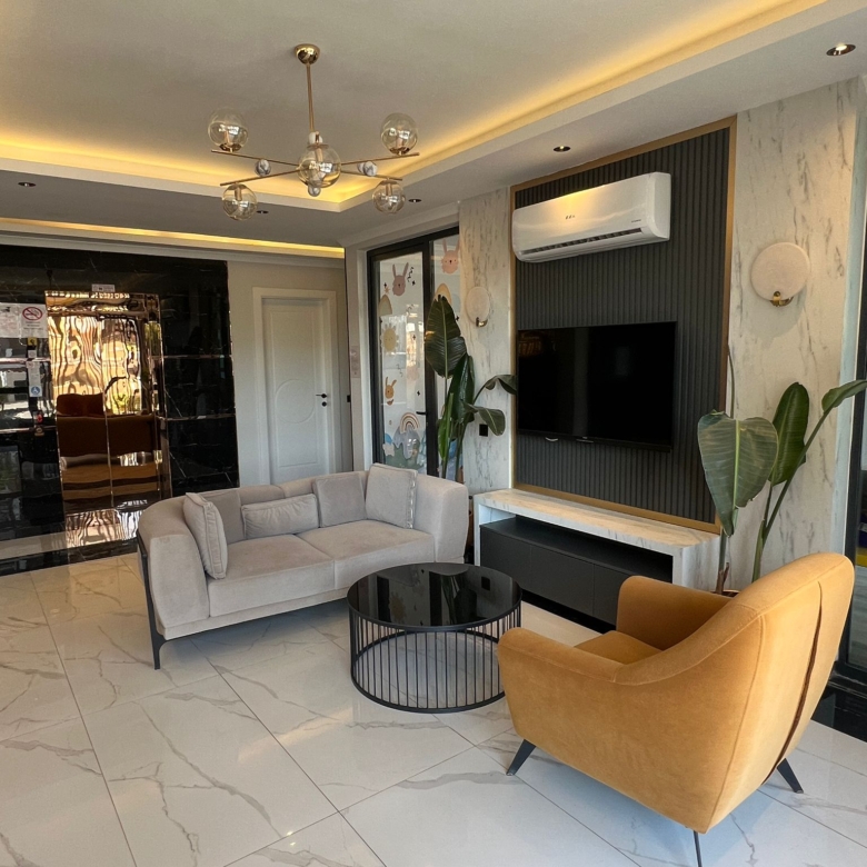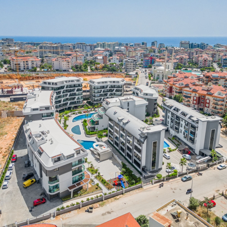 The complex consists of one 5-storey block and a private gated area, as well as a variety of infrastructure. The Mediterranean coast is 1 km away. Cafes, restaurants, a school, Metro Shopping Center, Alanyum, as well as a state hospital are all within walking distance from the house.